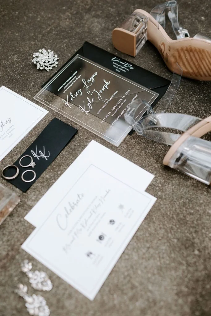 Acrylic wedding invitations. It's something I've been waiting to cross my desk for awhile. I've sent estimates for these beautiful things but Kelsey and Kyle were one of my first to pull the trigger. And they were the perfect couple for this. For many reasons. Let's list those reasons: