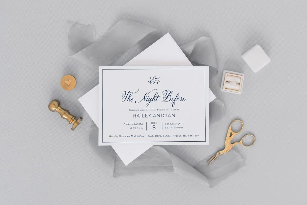 Maybe that question has popped into your head or has been presented to you from a family member. It's something that is probably not on your radar. I mean, you've found an amazing designer to do your wedding invitations (*cough cough*) but the rehearsal dinner hasn't crossed your mind. And do you do those? Is the groom's family in charge of those? Are they sent with the invitations?