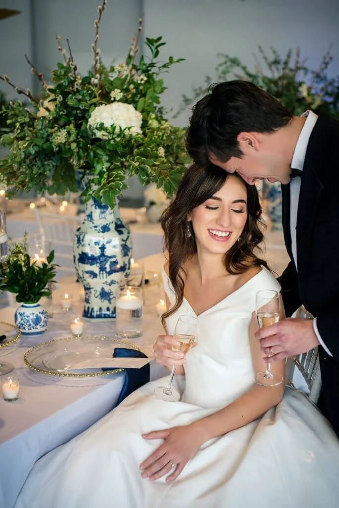 And I'm glad I did because the images captured by CB Yates Photography are nothing less than stunning. The blue tones used in this styled shoot are in between classic and boho. I love the ornate details of the vases and glassware by Aaron Carlson Design.