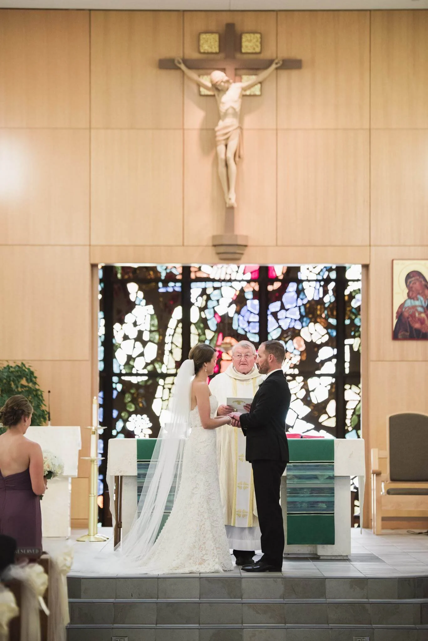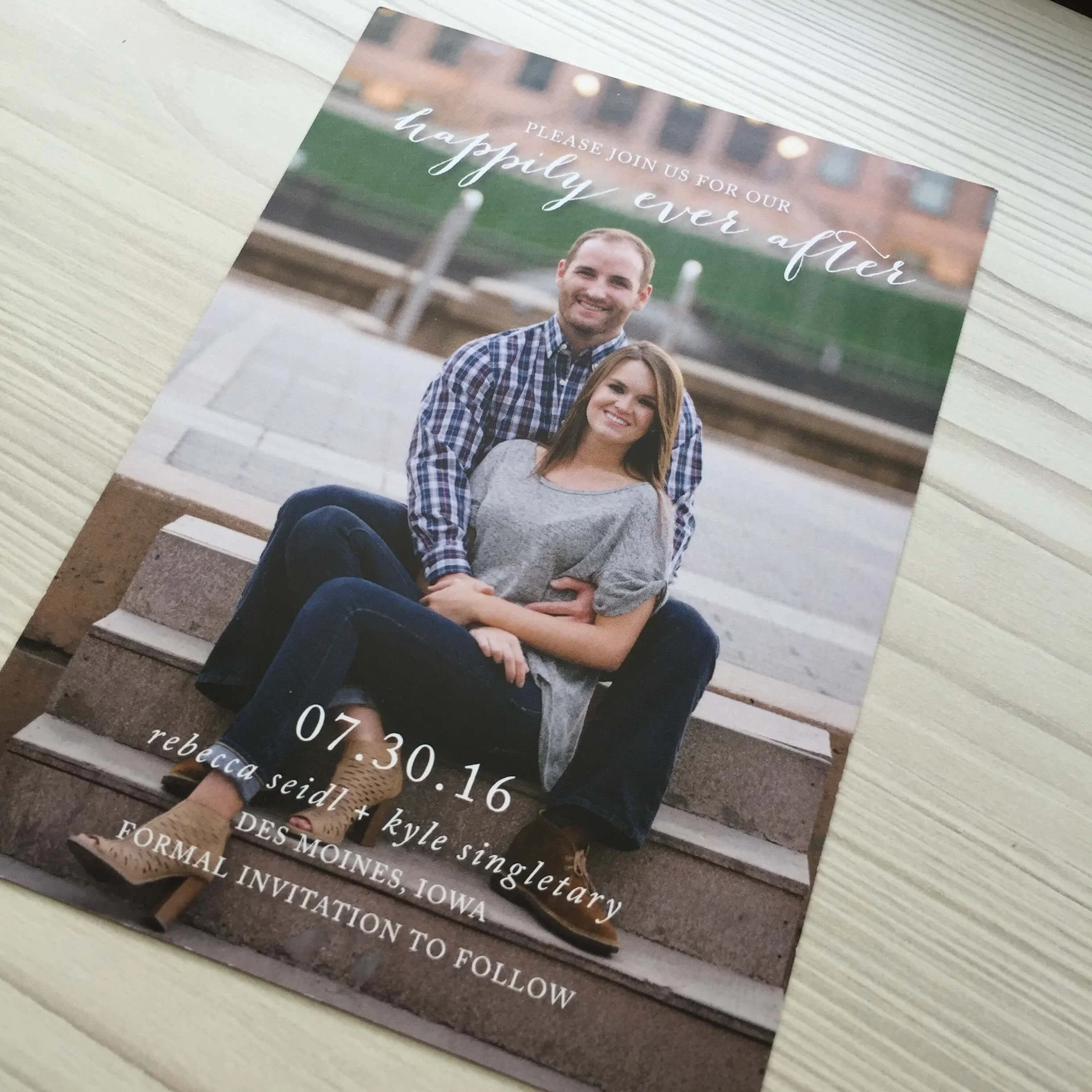 There is something about working with brides from Iowa that I just love. Maybe it's the air a bit more East of Omaha or maybe it's that I can venture out and discover new venues. Whatever it is, Becca and Kyle fit into the category of a couple that I loved to work with.Becca and I started talking via email because her friend Ellen referred me to her. Becca trusted me with her Save the Dates before she even met me.And when we met, I got to know even more about their wedding, their style and how this fabulous look was going to fall into place. Which on my end for invitations, they did. We created this elegant purple and black wedding invitation for the big day. From there came ceremony programs, the rehearsal dinner invite and afterward, cute Thank You notes with several photos from their wedding day. (love these).Check out some shots from their big day from Katie Evans Photography and of course a highlight video from SJ Film Productions.Becca + Kyle | July 30, 2016Des Moines, IowaCeremony Location: St. Pius X Catholic ChurchReception Location: Iowa Events CenterPhotographer: Katie Evans PhotographyDress: Perry BridalTuxes/Suits: HalberstadsFlorist: The English RoseCake: Hy-Vee WaukeeVideographer: SJ Film ProductionsDJ/Music: Black Tie BeatsMakeup: Hannah (Serenity Aveda)Hair: Mia Weber BridalSaveSaveSave