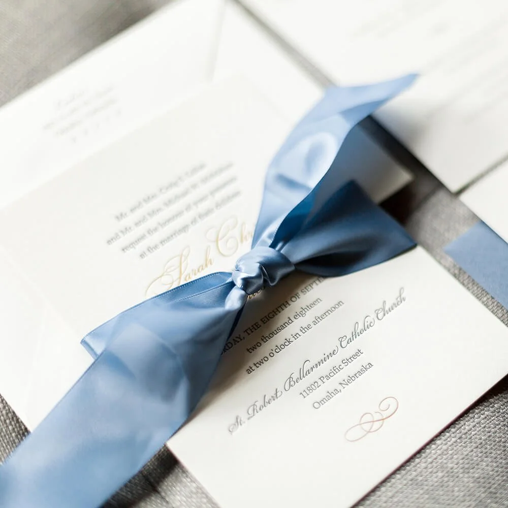 And Sarah & Kevin's wedding invitations turned out beautiful. They wanted classic and traditional. And I mean, why not? Their wedding was a beautiful catholic church wedding at St. Robert's in Omaha followed by a reception at Happy Hallow Country Club. Not much more classic than that.