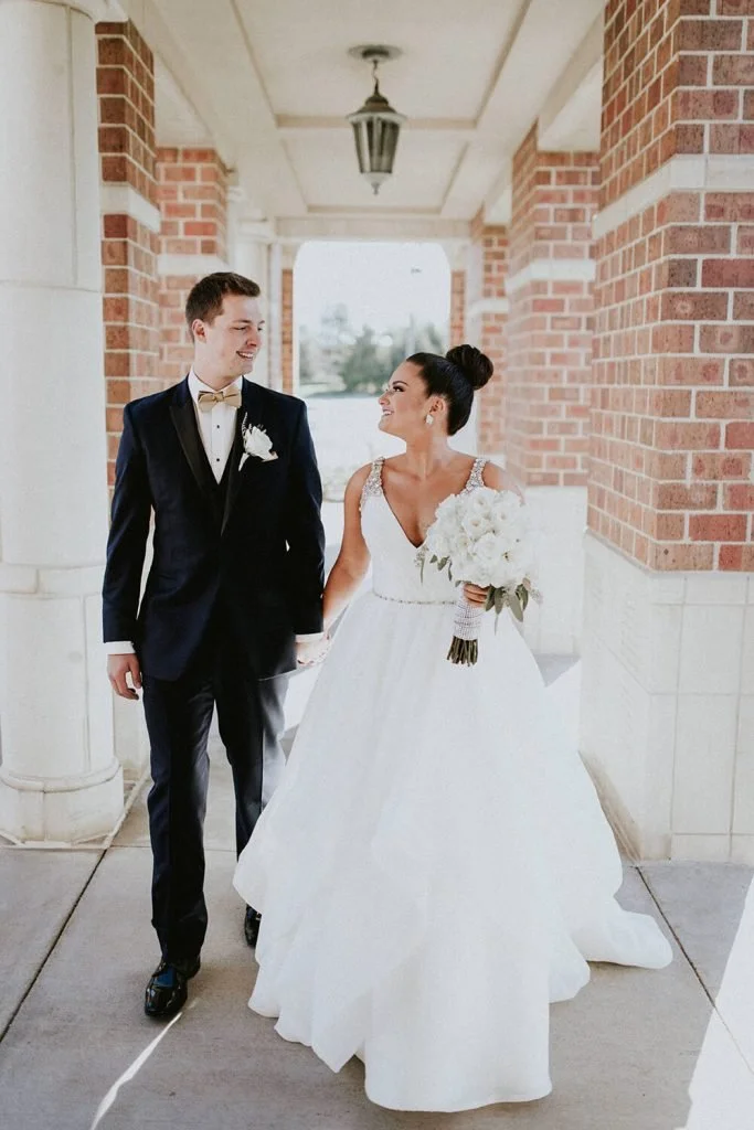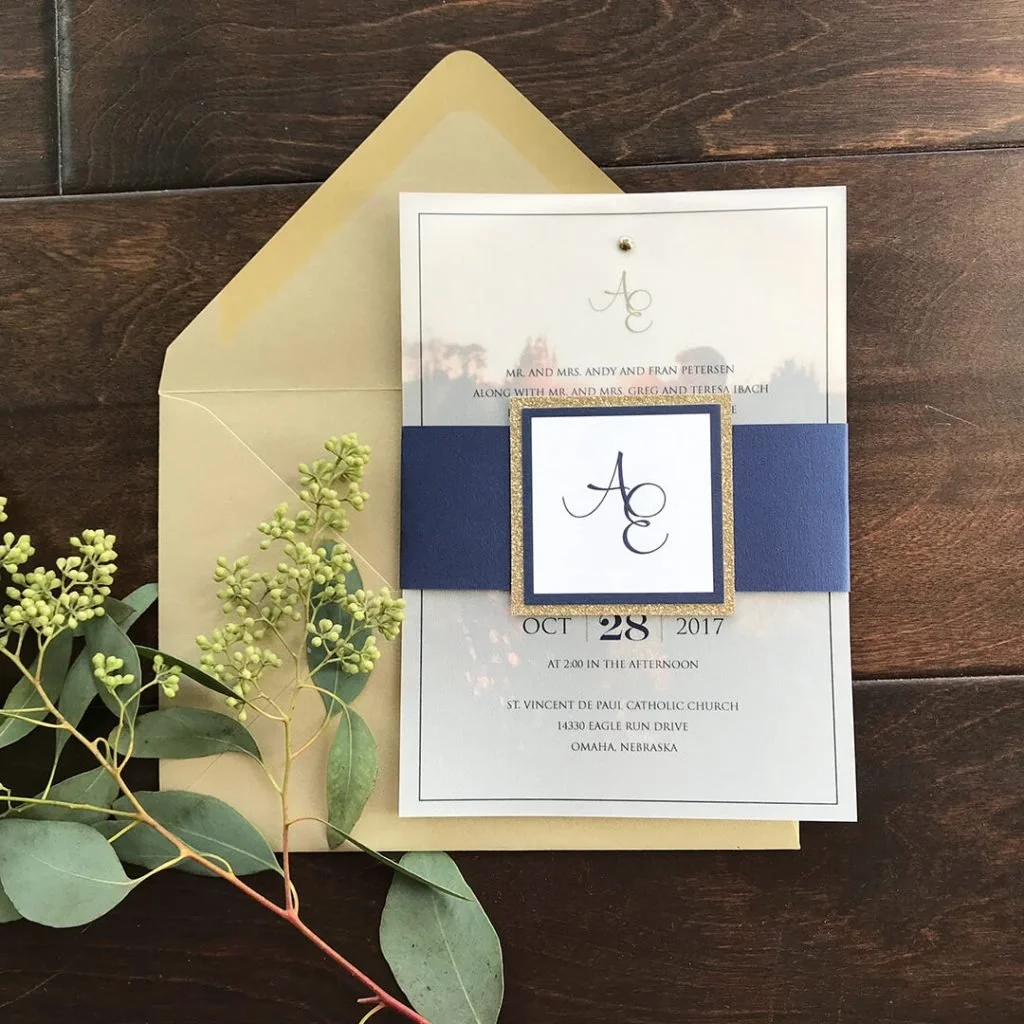 I really wanted to crash this wedding. It was going to be gorgeous, I did so many custom pieces for them and I was staying downtown that weekend with two girlfriends for a weekend away. Ashley even told me to!I didn't.And I regret it.Ashley & Evan's wedding invitations were beautiful. Ashley & Evan wanted something different and we created a beautiful invitation printed on vellum over the top of one of their engagement photos. It was the first of this style I designed and since then, have done it a few more times.End of story, right? Invitations were beautiful. Just like all my other blogs.But hang on. It. Gets. Interesting. For me, I didn't realize at the time how integral I would be in designing many of their wedding day pieces. Ashley & Evan's wedding was one of the first I realized that I can create anything a couple needs for wedding day.Including 5' gold monogram. FIVE FOOT tall monogram. That would hang over their head table.Yep, I can do that. Plus 12" monograms and who knows what other monograms I created but I loved everything we put their beautiful monogram on.Check out the gorgeous details of their wedding at St. Vincent de Paul in Omaha and reception at Hilton Omaha. I was honored to have designed for this beautiful couple!Ashley & EvanOctober 28, 2017Ceremony: St. Vincent de Paul Catholic ChurchReception: Hilton OmahaPhotographer: Matthew Schueller PhotographyVideographer: Love and Light ProductionsCoordination: Basic Bash EventsEvent Decor: Occasion Designed & Teresa Ibach (Groom's Mother)Flowers: HyVeeDress: Hayley Paige via Rhylan LangMen's Wear: Tip Top TuxMakeup: KontempoCake: Cake CreationsTransportation: VIP Limo