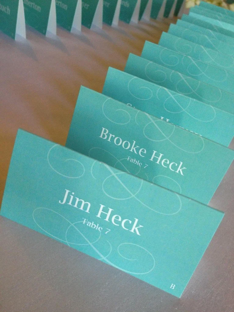 One thing I like to let brides know that even if I don't design your wedding invitations, there are still so many other pieces I can help you create.Kelly is the perfect example of this. I met Kelly three years ago at the bachelorette party for a good friend of ours. She was the maid of honor in the wedding, I was the matron of honor. At the time we met, Kelly had no man...and no want of no man. I liked her from the beginning. Well, time went by and Kelly was lucky enough to fall in love with a guy that she went to high school with. If you don't believe in fate, talk to someone like this.Kelly came to me with her Save the Dates. Then her custom monogram which featured how their last names both began with "Mc". Then labels with the monogram, place cards, mad lib cards, programs, water bottle labels....am I missing anything? Regardless, you get the point. Even though I didn't do her invitations, the stationary pieces done afterwards were just as fun and still went with the same style she was going for on their wedding day. And their wedding style was nothing less than magnificent. Tiffany blue was how Kelly wanted to accent her wedding, but by looking at her photos, her theme was set as "beautiful". From her dress, to the centerpieces to the small details, everything was perfect.Thank you for allowing me to help design for your amazing wedding day, Kelli & John. A lifetime of happiness to you!Kelly + JohnJune 14, 2013