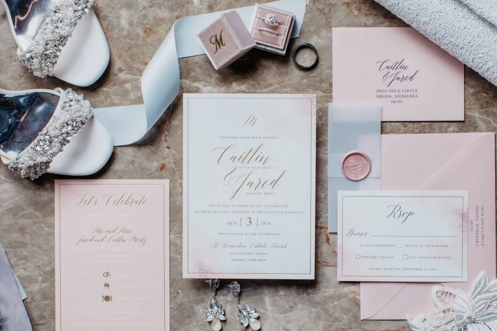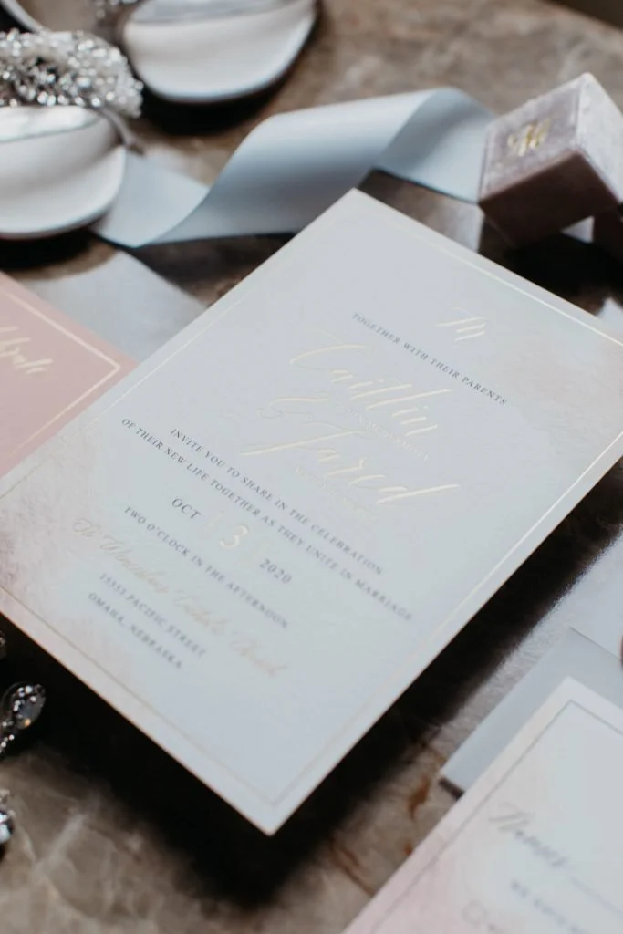Mauve, Blush & Gold Wedding Invitation Perfection for Fall Omaha Couple