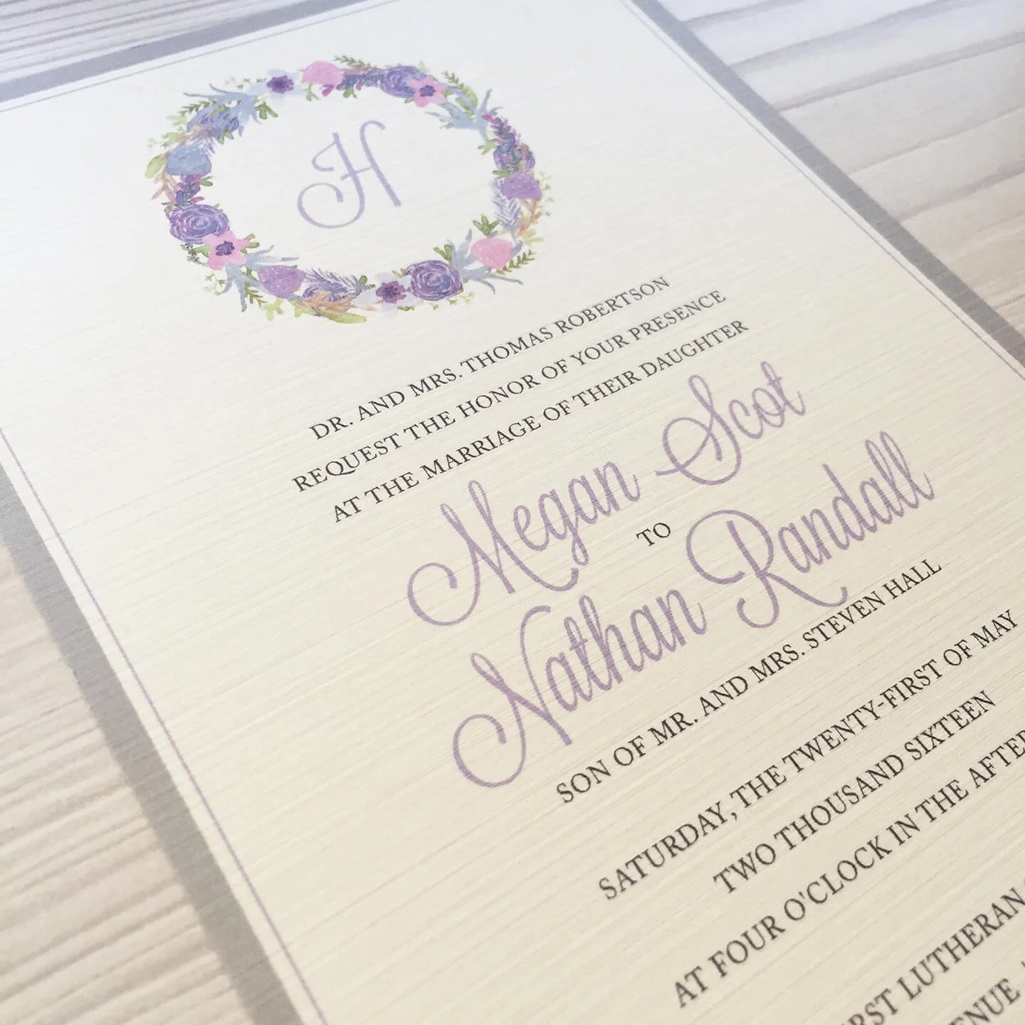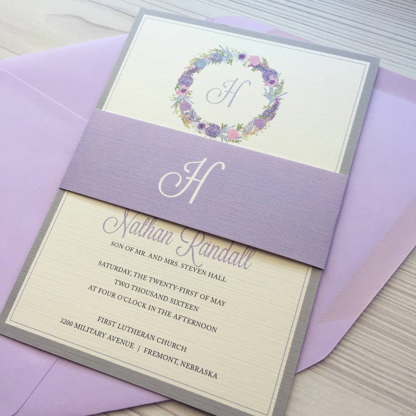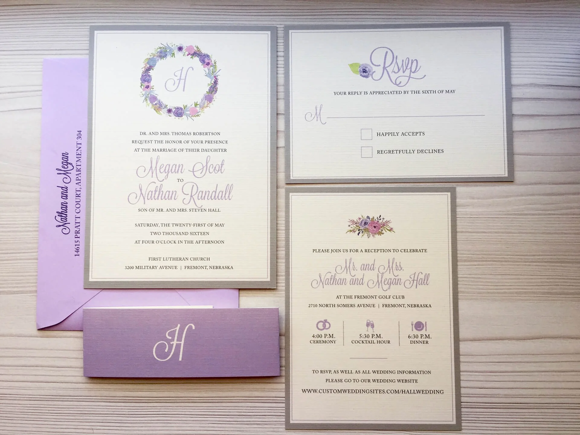 "I really like that one, but could you..."I hear that once in awhile during a invitation consultation. I tell all couples when we meet and I'm pulling out my bins of invitations, that none of the invitations I'm going to show them are exactly their style. That's what's great about custom invitations. You can create whatever you want to match your wedding style.But Megan saw one of my previous invitations (which I also blogged about) and it was in her wheelhouse. We changed the colors to match the light purple and gray color scheme she was going with as well as changing up the floral arrangement designs. What we came up with...something that was close to the previous invitation, but something truly their own.For Megan and Nathan's wedding, I designed these gorgeous invitations with guest information timeline (love this!) that were wrapped in a monogrammed belly band. We also designed coordinating ceremony programs which were on hand when this gorgeous bride walked down the aisle this past May.Thank you to Megan and Nathan for letting me design for your wedding day. Wishing you a lifetime of happiness!Megan + NathanMay 21, 2016Ceremony: First Lutheran Church, Fremont, NebraskaReception: Fremont Golf ClubWedding Planner: Holly Strudthoff Photographer: Becky Novacek Photography (check out her blog on Megan & Nathan's big day)Dress: Ready or KnotTuxes: Tip Top TuxFlorist: Avant GardenCake: Cupcake IslandDJ: DJ Dustin PapaHair & Makeup: Jenn HadawayInvitations & Stationary: dSy invitationsSaveSaveSave