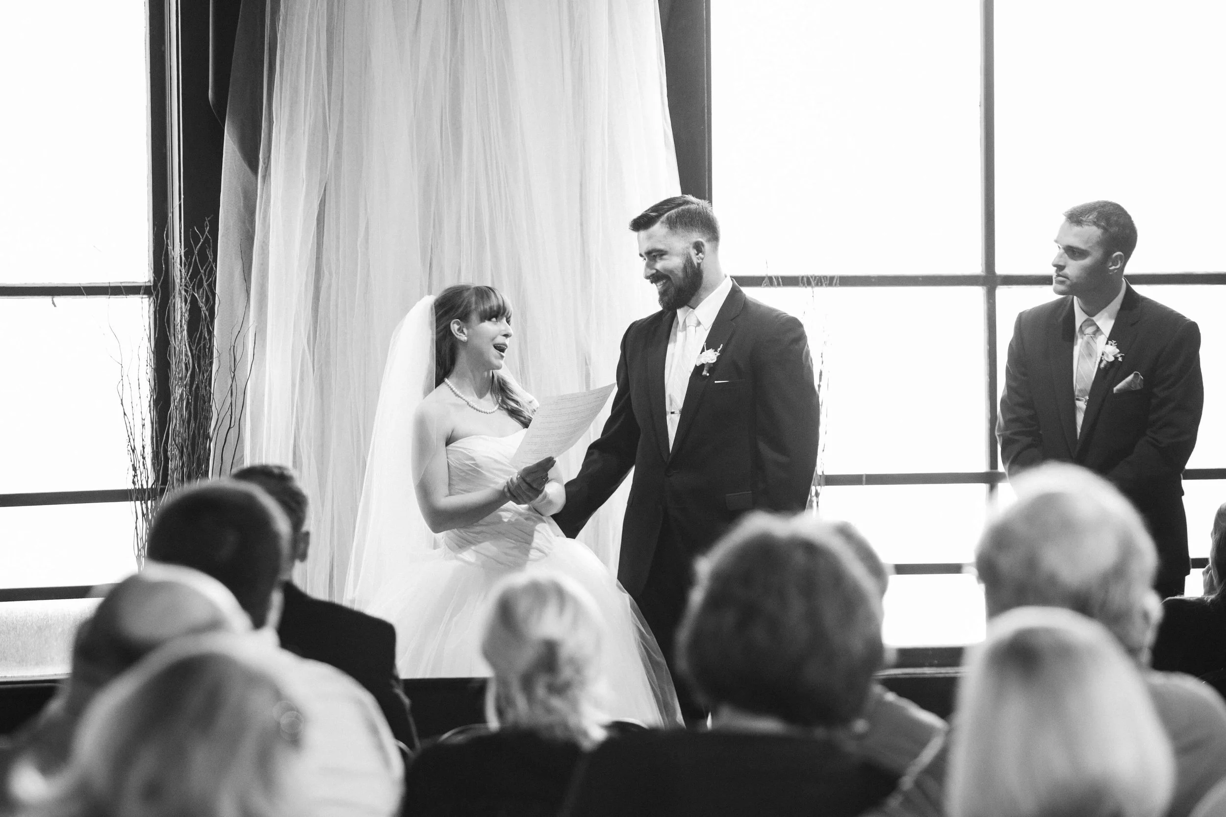 There aren't many brides I get to design for that truly love a modern look. Straight lines, san serif fonts, large lettering...you get it. But I met Ashley & Sean and that's exactly what they wanted. I didn't have much to show them that went with their style. But I knew we could come up with something fantastic for their big day. This down-to-earth couple was easy to work with and were so appreciative. They weren't afraid of anything I threw at them. And their invite is modern yet sophisticated. It went well with the industrial look of 1316 Jones in Omaha, Nebraska. The venue...probably the inspiration of this design.Their invitation suite started with Save the Dates, ended with ceremony programs. And I couldn't have been happier with how everything turned out. I hope they feel the same way about their wedding day. Check out the photos from Andrea Bibeault Photography below. That grooms cake and groomsmen socks....to die for!Congrats to this wonderful couple married this past May!Photo Cred: Andrea Bibeault Photography