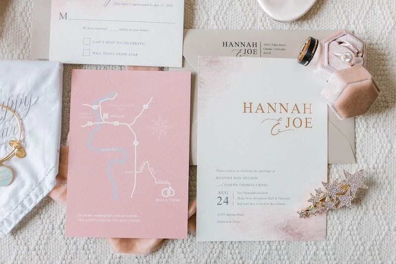For Hannah and Joe, their wedding day at Bella Terre in Glenwood, Iowa came together beautifully and their invitations, which are currently a pre-designed invitation option on my website, were one of my faves.