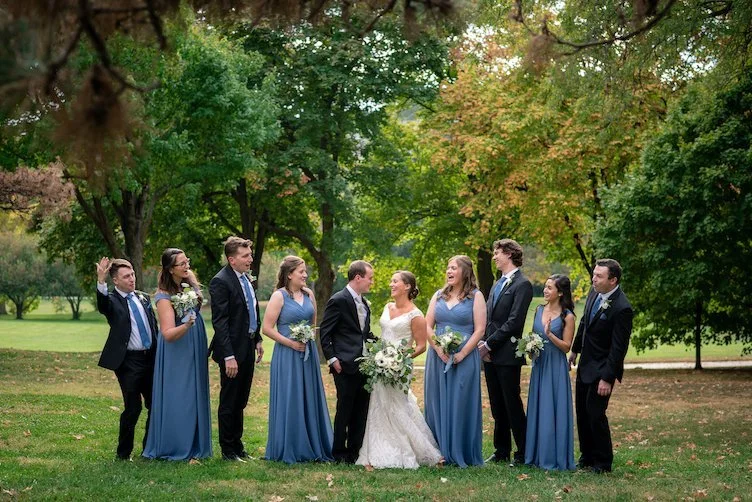 Their wedding, which happened in October and not May, was still everything a couple could ask for. Dusty blue was brought into everything and I loved using their monogram on the top of their deckled edge menus. Such a fantastic touch!
