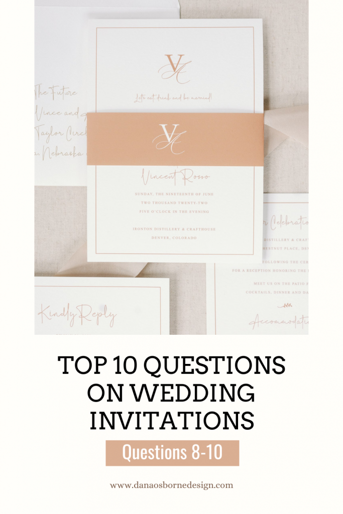I have compiled a list of the Top 10 questions I get about wedding invitations and made a blog series about it. So check out questions number ten through eight that I receive.